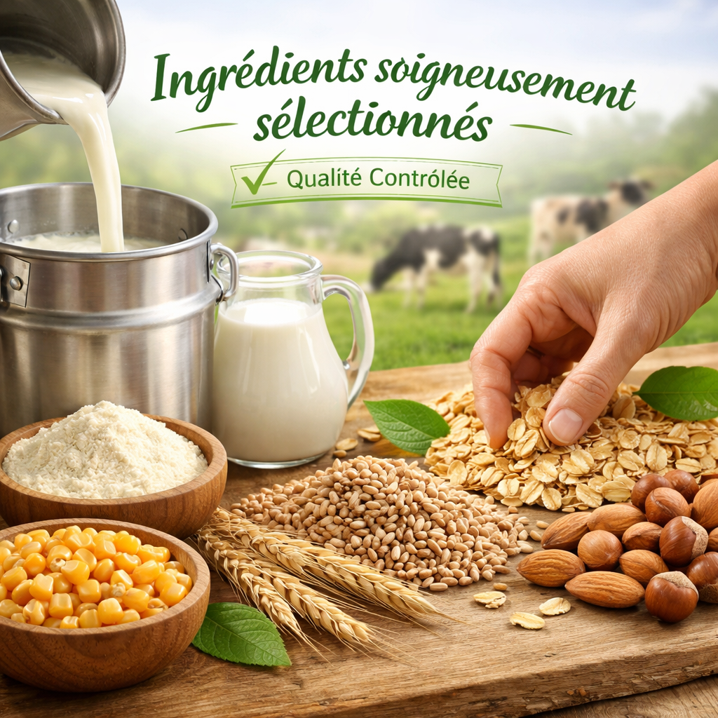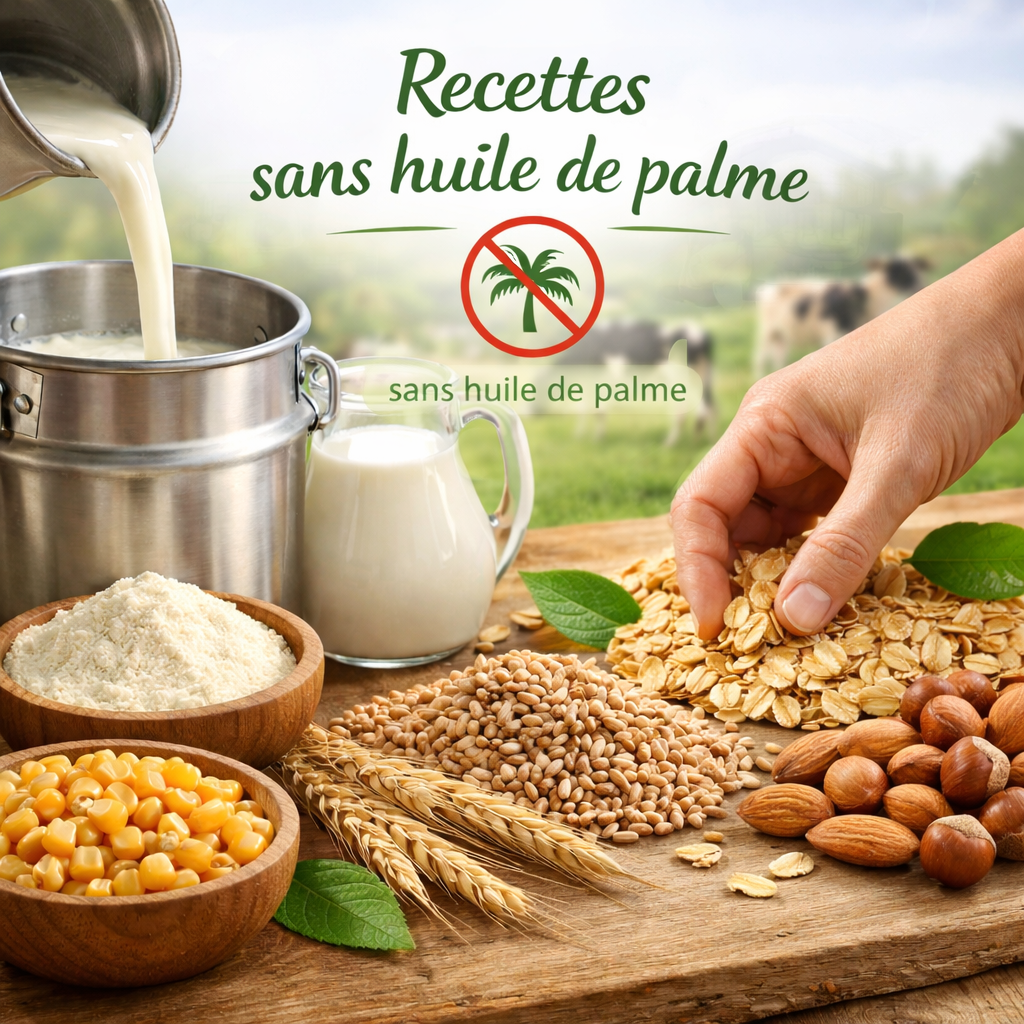 Des recettes soigneusement élaborées, sans huile de palme, enrichies en nutriments essentiels pour le confort digestif et le développement harmonieux des nourrissons.